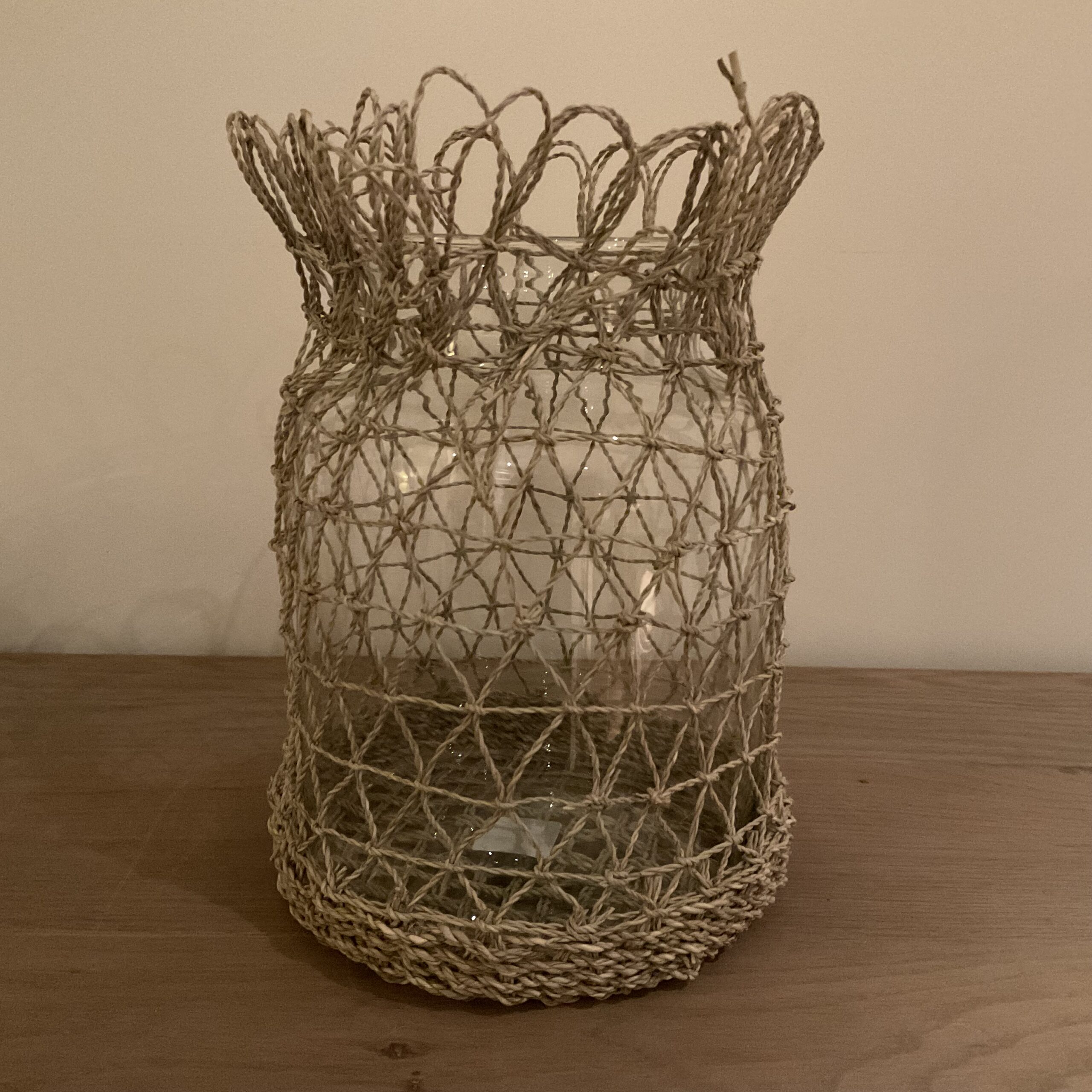 Glazen vaas met touwen