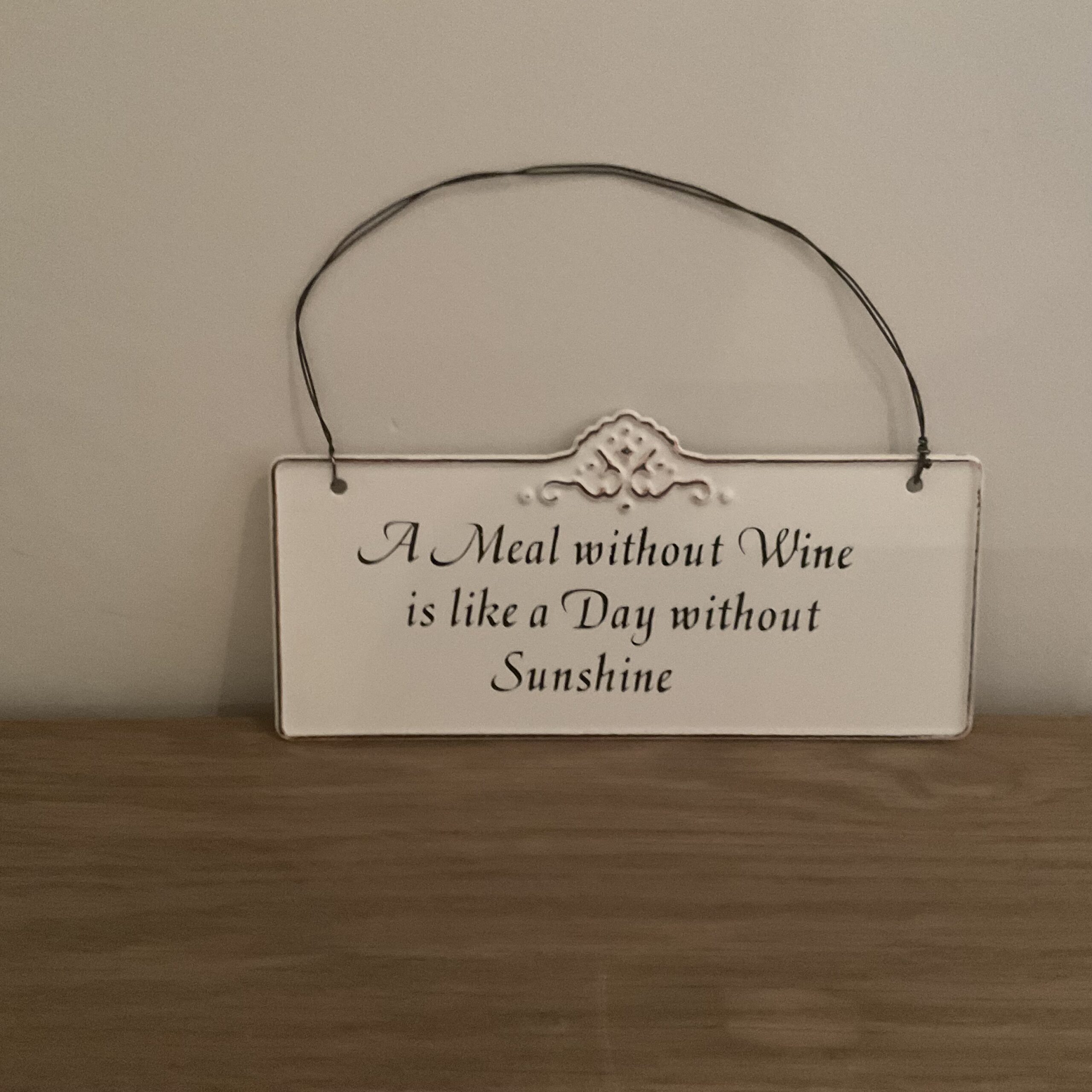 tekstbordje “A meal without wine…”