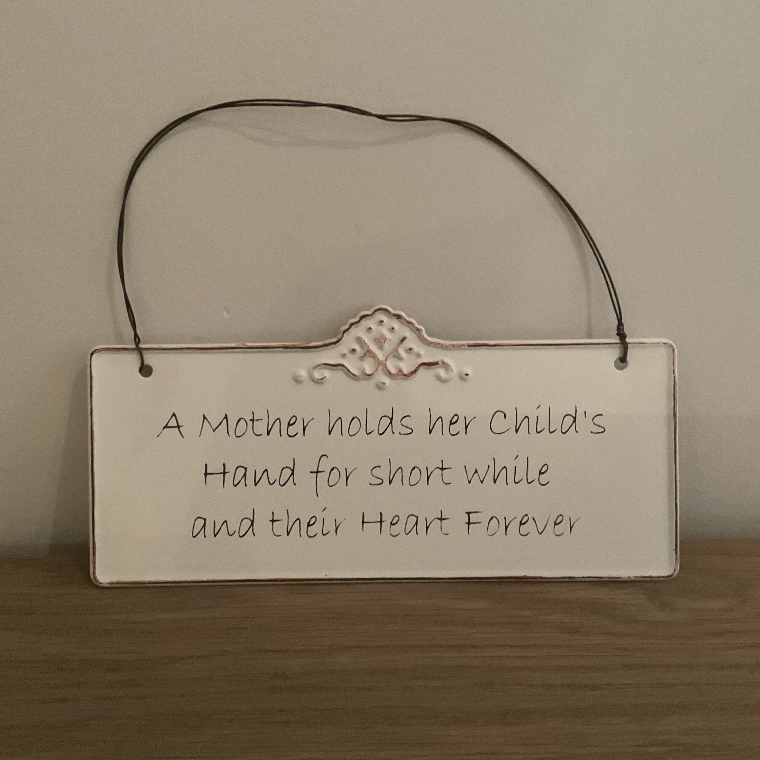 Tekstbordje “A mother holds her child’s…